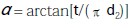 α=arctan[t/(πd2)]=arctan[6/(3.14159×29)]=3.77
