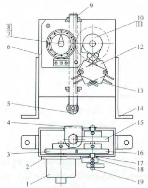 6.反饋組件固定架7.行程變換齒輪8.反饋主動齒輪9.軸承