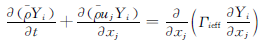 (n為組分個(gè)數(shù),因本文中只有蒸汽和液滴,故取n=2);Γi為分子擴(kuò)散系數(shù);μt為湍流渦粘系數(shù);sct為紊流施密特?cái)?shù)。