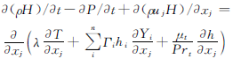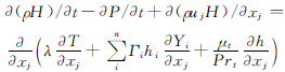 (4)能量方程。能量方程描述了流動(dòng)過程中流體的能量守恒性質(zhì),考慮組分影響后的方程為: