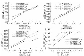 圖3 徑向槽數(shù)不同時(shí)各參數(shù)對(duì)流量的影響