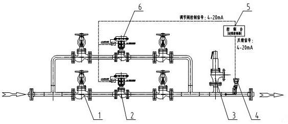由于工廠生產工藝的需要,蒸汽是必不可少的工藝介質,需要從電廠輸入蒸汽,因電廠到工廠的距離較遠存在壓力波動較大的情況以及工廠在實際使用的蒸汽流量波動范圍較大,因此在進入工廠的蒸汽主管道壓力進行減壓穩壓,特別是在蒸汽用量很小時,即閥門的開度很小,閥門在小開度情況下不是很穩定,容易出現閥門震蕩。解決方案:采用兩個氣動控制閥或者兩個電動控制閥并聯的方式來應用。