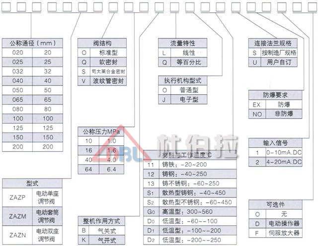 本系列產(chǎn)品公稱通徑由20至200mm,公稱壓力有1.0、1.6、4.0、6.4MPa;使用溫度范圍由40℃~450℃,接受信號(hào)為0~10mA.DC或4~20mA.DC。其中電動(dòng)單座調(diào)節(jié)閥適用于壓差較小,介質(zhì)粘度較大或稍有顆粒雜質(zhì)場(chǎng)合。電動(dòng)套筒調(diào)節(jié)閥適用于壓差較大場(chǎng)合。按閥內(nèi)件密封部分材質(zhì)分又有金屬-金屬和非金屬-金屬密封兩種,后者閥關(guān)閉時(shí)泄漏量可達(dá)Ⅵ級(jí)(零泄漏)標(biāo)準(zhǔn)。按填料不同可分為一般填料密封和波紋管密封兩種。前者用于一般場(chǎng)合,而后者用于不允許外漏的重要場(chǎng)合。流量特性為線性或等百分比。配用不同的執(zhí)行機(jī)構(gòu)可分為普通型和電子型兩種。多種多樣的品種規(guī)格可供選擇。