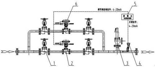 1、自力式調壓閥 2、截止閥 3、儲汽罐 4、安全閥